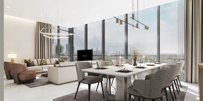 آپارتمانها با پلانهای باز، پنجرههای قدی و بالکنهای وسیع طراحی شدهاند تا منظرهای ۲۷۰ درجه از پناهگاه حیات وحش راسالخور، افق دبی و زمین گلف را به درون خانه بیاورند.